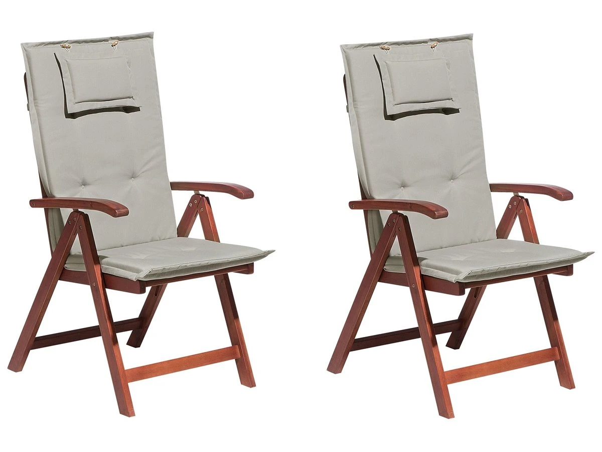 Conjunto de 2 sillas de jardín en madera con respaldo regulable. Agrega un toque de encanto campestre a tu jardín con este elegante conjunto de sillas de inspiración rústica. Fabricadas con madera de acacia de alta calidad en color marrón, estas sillas complementan cualquier entorno al aire libre. También presentan una alta resistencia a los rayos UV y a la intemperie, lo que garantiza longevidad a lo largo de los años. La relajación también está garantizada gracias al respaldo reclinable de las sillas que te permite configurar esta pieza como desees y, para mayor comodidad, las sillas se pueden plegar para un fácil almacenamiento. Detalles: Tipo de Producto: Silla de jardín Estilo: Rústico Color: Madera oscura Tonalidad: Rojo oscuro Tipo de material: Madera maciza Material principal: Madera de acacia Material adicional: Acero Material de las patas: Madera maciza Material del asiento: Tejido Composición del Material: 100% Poliéster Partes ajustables: Respaldo Apoyabrazo: Sí Acabado: Aceitado Plegable: Sí Apilable: No Dimensiones: Altura del apoyabrazos: 23 cm Profundidad: 69 cm Espesor del asiento: 5 cm Altura del asiento: 44 cm Ancho: 54 cm Altura: 105 cm Superficie del asiento: 48×43 cm Peso: 10 kg Capacidad de peso: 160 kg La oferta incluye: 2 x Silla, 2 x Cojín Ventajas: Las tiras ofrecen una fijación segura, Diseño atemporal, Combina con todo tipo de decoración, Apariencia moderna y calidad durante muchos años, Resistencia UV 5 (ISO 105-B02, Plegable, ahorra espacio, Materiales naturales Información de montaje: No requiere montaje Información adicional: Por favor, ten en cuenta que la madera es un producto natural, y cada pieza puede presentar ligeras variaciones. Las diferencias en el color o la textura, como las arrugas u otras características naturales, no se consideran un defecto ni tampoco una base de reclamación, El producto viene con un libro de cuidados detallado para ayudarte a mantener tus muebles en las mejores condiciones durante muchos años. Consulta estos consejos para garantizar el mantenimiento adecuado de tus muebles nuevos – encontrarás las instrucciones de mantenimiento junto con el manual de montaje. Texto de resistencia: Gracias a su resistencia al agua, puedes utilizar el producto al aire libre y dejarlo a la intemperie durante lluvias ligeras. Si no es posible guardarlo en un lugar cerrado y protegido, recomendamos utilizar una funda protectora. La exposición prolongada a la humedad puede provocar daños en el mueble. Resistencia: Agua ligera / humedad Consejos de mantenimiento: Madera de acacia: 1.Durante el invierno o en condiciones climáticas adversas, utilice una funda protectora o guarde los muebles en el interior 2.Los muebles con acabado de aceite deben volverse a engrasar antes de ponerlos en uso y al menos una vez al año, especialmente en el clima húmedo 3.Limpiar con un limpiador suave y un paño suave en la dirección de la veta. Secar con un paño inmediatamente después de limpiar. Poliéster: 1.Limpiar con champú seco y una esponja húmeda o un limpiador suave 2.Cuando no esté en uso, manténgalo en un lugar limpio y seco para protegerlo de las condiciones atmosféricas 3.Aspire con un accesorio adecuado.
