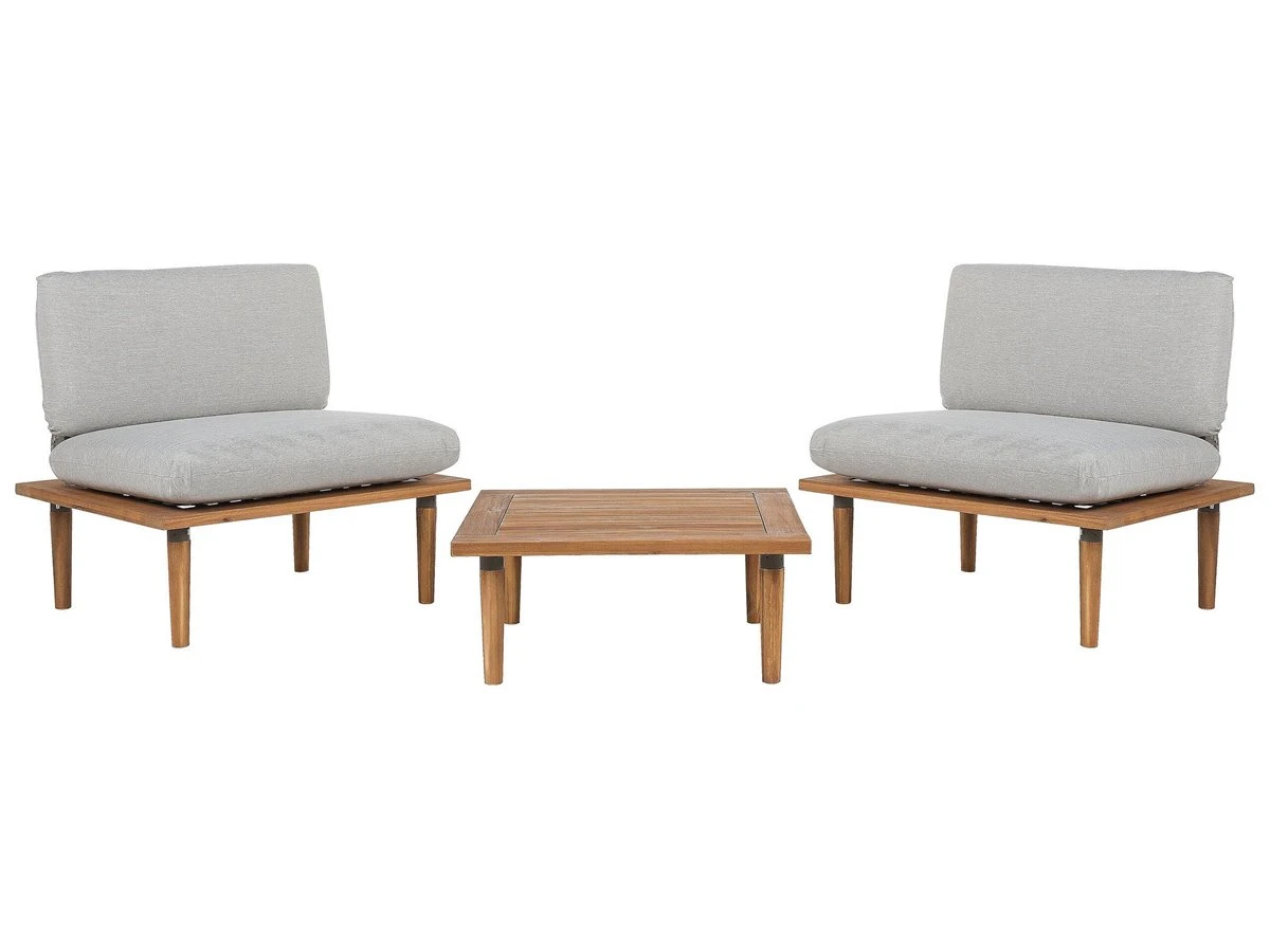 Conjunto de jardín con cojines. Este conjunto de muebles te impresionará con su forma y funcionalidad. Está elaborado de madera de acacia resistente y es un complemento perfecto tanto para el jardín como para la terraza. El conjunto incluye 2 cómodos cojines de asiento y respaldo en un elegante color gris. La mesa de centro cuadrada complementa perfectamente el diseño de este conjunto y destacan su estilo moderno y ligero. Detalles: Tipo de Producto: Conjunto de jardín Estilo: Moderno Color: Gris Tonalidad: Gris claro Tipo de material: Madera maciza Material principal: Madera de acacia Material adicional: Poliéster Material de la superficie: Madera maciza Composición del Material: 100% Poliéster Acabado: Revestimiento en polvo Densidad de espuma del asiento: 18 kg/m3 Dimensiones: Dimensiones del sillón: 80x70x78 Dimensiones de la mesa de centro: 70x70x31 Espesor del asiento: 10 cm Altura del asiento: 33 cm Peso: 34 kg Capacidad de peso de la mesa: 60 kg Capacidad de peso por persona: 120 kg La oferta incluye: 2 x Sillón, 2 x Cojines del asiento, 2 x Cojín del respaldo, 1 x Mesa de centro Ventajas: Los nudos y vetas de madera natural hacen que cada pieza sea única, Perfecto para todo tipo de exterior, Resistencia UV 4 (ISO 105-B05, Materiales de calidad, Fundas extraíbles Información de montaje: Requiere montaje completo. Más de 60 min. Información adicional: El producto viene con un libro de cuidados detallado para ayudarte a mantener tus muebles en las mejores condiciones durante muchos años. Consulta estos consejos para garantizar el mantenimiento adecuado de tus muebles nuevos – encontrarás las instrucciones de mantenimiento junto con el manual de montaje. Texto de resistencia: Gracias a su resistencia al agua, puedes utilizar el producto al aire libre y dejarlo a la intemperie durante lluvias ligeras. Si no es posible guardarlo en un lugar cerrado y protegido, recomendamos utilizar una funda protectora. La exposición prolongada a la humedad puede provocar daños en el mueble. Resistencia: Agua ligera / humedad Consejos de mantenimiento: Madera de acacia: 1.Durante el invierno o en condiciones climáticas adversas, utilice una funda protectora o guarde los muebles en el interior 2.Los muebles con acabado de aceite deben volverse a engrasar antes de ponerlos en uso y al menos una vez al año, especialmente en el clima húmedo 3.Limpiar con un limpiador suave y un paño suave en la dirección de la veta. Secar con un paño inmediatamente después de limpiar. Poliéster: 1.No secar en secadora y no planchar 2.Lavar a mano o seleccionar un ciclo de lavado de lana (30 ° C, a menos que el fabricante especifique lo contrario. Lavar del revés con la cremallera cerrada 3.Cuando no esté en uso, manténgalo en un lugar limpio y seco para protegerlo de las condiciones atmosféricas.