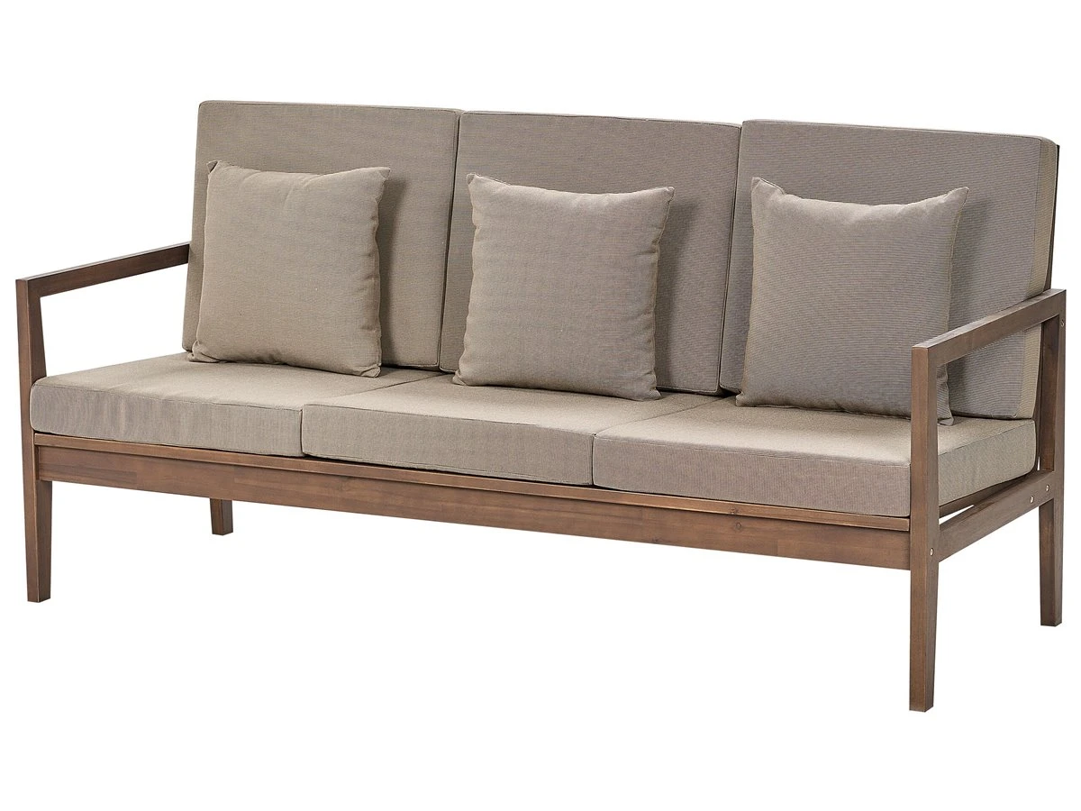 Juego de exterior. Añade a tu zona exterior este conjunto de jardín de diseño moderno. Está constituido por una mesa de centro, 2 bancos, una silla y una tumbona esquinera. Fabricado a partir de madera de acacia resistente y de alta calidad. Los cojines de tela sintética y el acolchado grueso proporcionan la máxima comodidad. El juego ofrece múltiples posibilidades de configuración. Detalles: Tipo de Producto: Conjunto de jardín Estilo: Moderno Color: Madera oscura Tonalidad: Gris pardo Tipo de material: Madera maciza Material principal: Madera de acacia con certificado FSC® Material adicional: Poliéster Material de la superficie: Madera maciza Composición del Material: 100% Poliéster Acabado: Aceitado Densidad de espuma del asiento: 20 kg/m3 Dimensiones: Dimensiones del sofá de 2 plazas: 123x74x88 Dimensiones del sofá de 3 plazas: 181x74x88 Dimensiones del sillón: 64x74x88 Dimensiones de la mesa de centro: 110x70x45 Dimensiones de la tumbona: 197x62x62 Espesor del asiento: 10 cm Altura del asiento: 39 cm Peso: 121 kg Capacidad de peso de la mesa: 50 kg Capacidad de peso por persona: 160 kg La oferta incluye: 1 x Sofá de 2 plazas, 1 x Sofá de 3 plazas, 1 x Sillón, 1 x Chaise longue, 1 x Mesa, 7 x Cojines del asiento, 8 x Cojines del respaldo, 7 x Cojín decorativo pequeño Ventajas: Perfecto para todo tipo de exterior, Los nudos y vetas de madera natural hacen que cada pieza sea única, Solida estructura, Resistencia UV 3 (ISO 105-B02, Fundas extraíbles Información de montaje: Requiere montaje completo. Más de 60 min. Información adicional: El producto viene con un libro de cuidados detallado para ayudarte a mantener tus muebles en las mejores condiciones durante muchos años. Consulta estos consejos para garantizar el mantenimiento adecuado de tus muebles nuevos – encontrarás las instrucciones de mantenimiento junto con el manual de montaje. Texto de resistencia: Gracias a su resistencia al agua, puedes utilizar el producto al aire libre y dejarlo a la intemperie durante lluvias ligeras. Si no es posible guardarlo en un lugar cerrado y protegido, recomendamos utilizar una funda protectora. La exposición prolongada a la humedad puede provocar daños en el mueble. Resistencia: Agua ligera / humedad Consejos de mantenimiento: Madera de acacia: 1.Durante el invierno o en condiciones climáticas adversas, utilice una funda protectora o guarde los muebles en el interior 2.Los muebles con acabado de aceite deben volverse a engrasar antes de ponerlos en uso y al menos una vez al año, especialmente en el clima húmedo 3.Limpiar con un limpiador suave y un paño suave en la dirección de la veta. Secar con un paño inmediatamente después de limpiar. Poliéster: 1.Lavar a mano únicamente, usar agua fría y un detergente suave 2.Cuando no esté en uso, manténgalo en un lugar limpio y seco para protegerlo de las condiciones atmosféricas 3.No secar en secadora ni planchar.
