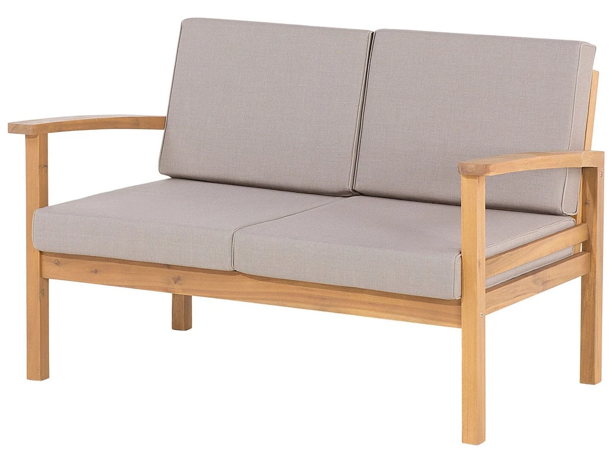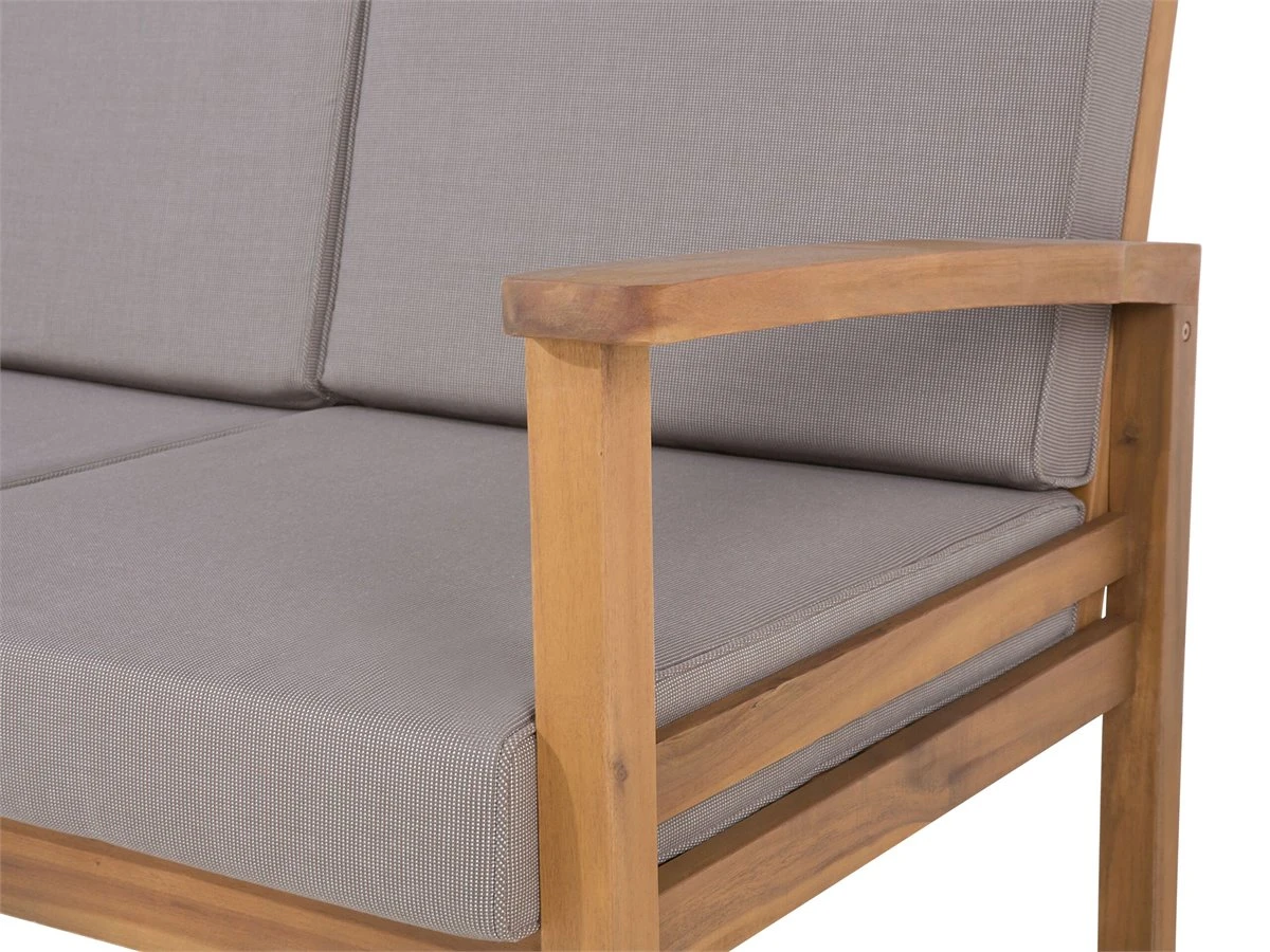 Conjunto de jardín de 5 piezas, en madera de acacia . Complementa el mobiliario de tu jardín con este encantador juego de jardín, compuesto por una mesa, biplaza, juego de sillones y otomana. La madera de acacia resistente proporciona a los muebles una durabilidad excepcional. El juego de jardín viene con un juego de cojines a juego, cada uno con un acolchado grueso para brindarte una experiencia de asiento absolutamente cómoda. Mantenido en un diseño campestre atemporal, el conjunto le ayuda a cumplir tus sueños de un jardín maravilloso. Detalles: Tipo de Producto: Conjunto de jardín Estilo: Moderno Color: Madera clara Tonalidad: Gris pardo Tipo de material: Madera maciza Material principal: Madera de acacia Material adicional: Poliéster Material de la superficie: Madera maciza Composición del Material: 100% Poliéster Acabado: Aceitado Densidad de espuma del asiento: 20 kg/m3 Dimensiones: Dimensiones del sillón: 72x72x75 Dimensiones del banco: 112x72x75 Dimensiones de la mesa de centro: 102x60x46 Dimensiones del reposapies: 64x44x40 cm Espesor del asiento: 10 cm Altura del asiento: 40 cm Peso: 76 kg Capacidad de peso de la mesa: 50 kg Capacidad de peso por persona: 130 kg La oferta incluye: 1 x Mesa, 1 x Banco, 2 x Sillón, 1 x Puf, 5 x Cojín del asiento, 4 x Cojín del respaldo Ventajas: Combina con todo tipo de decoración, Perfecto para todo tipo de exterior, Resistencia UV 3 (ISO 105-B02, Ideal para uso al aire libre, Fundas extraíbles, Materiales naturales Información de montaje: Requiere montaje completo. Más de 60 min. Información adicional: El producto viene con un libro de cuidados detallado para ayudarte a mantener tus muebles en las mejores condiciones durante muchos años. Consulta estos consejos para garantizar el mantenimiento adecuado de tus muebles nuevos – encontrarás las instrucciones de mantenimiento junto con el manual de montaje. Texto de resistencia: Gracias a su resistencia al agua, puedes utilizar el producto al aire libre y dejarlo a la intemperie durante lluvias ligeras. Si no es posible guardarlo en un lugar cerrado y protegido, recomendamos utilizar una funda protectora. La exposición prolongada a la humedad puede provocar daños en el mueble. Resistencia: Agua ligera / humedad Consejos de mantenimiento: Madera de acacia: 1.Durante el invierno o en condiciones climáticas adversas, utilice una funda protectora o guarde los muebles en el interior 2.Los muebles con acabado de aceite deben volverse a engrasar antes de ponerlos en uso y al menos una vez al año, especialmente en el clima húmedo 3.Limpiar con un limpiador suave y un paño suave en la dirección de la veta. Secar con un paño inmediatamente después de limpiar. Poliéster: 1.Lavar a mano únicamente, usar agua fría y un detergente suave 2.Cuando no esté en uso, manténgalo en un lugar limpio y seco para protegerlo de las condiciones atmosféricas 3.No secar en secadora ni planchar.