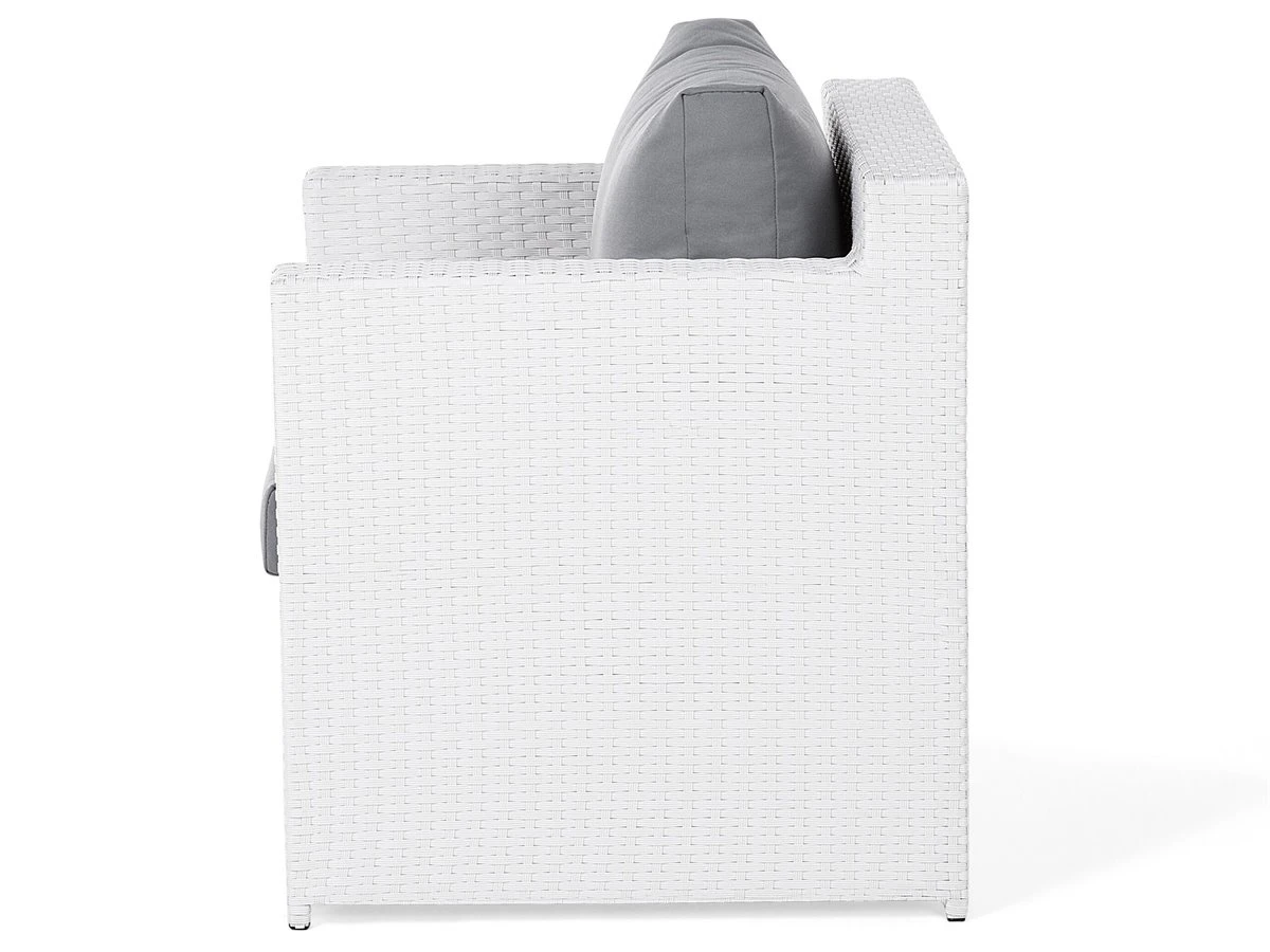 Conjunto de jardín de 5 piezas con cojines. Añade a tu jardín este conjunto de muebles atemporales y confortables, creados a partir de materiales de alta calidad. El set ROMA está construido a partir de poli ratán (mimbre sintético complementado con un moderno y llamativo diseño. Este conjunto está compuesto por un sofá de 3 plazas de 180x67x74 cm, 2 butacas de 74x66x74 cm, con un asiento de 43 cm de altura. Las butacas cuentan con apoyabrazos y el reposapiés de 59x37x38 cm, puede funcionar como un asiento adicional o como un cómo mueble de descanso para sus pies, en el patio, jardín o balcón. Los cojines de 10 cm de grosor son fáciles de conservar. Las fundas de poliéster son resistentes a las manchas, a la humedad y pueden ser lavados a mano o a máquina a 40°C. La mesa de 116x61x45 cm posee un estante funcional debajo de la superficie. Este espacio adicional de 22 cm de altura proporciona un almacenamiento perfecto para libros, gafas de sol o un protector solar. La superficie de vidrio templado de 5 mm de espesor, asegura estabilidad y espacio suficiente. Todas las piezas son ligeras y fácilmente movibles, por lo tanto se pueden ubicar de diversas maneras. El poli ratán es un material respetuoso del medio ambiente, utilizado para muebles de jardín debido a su durabilidad y resistencia a las diferentes condiciones climáticas. El robusto marco está construido de aluminio con revestimiento en polvo, y proporciona máxima estabilidad. Detalles: Tipo de Producto: Conjunto longue Estilo: Escandinavo Color: Blanco Tipo de material: Ratán sintético Material principal: Ratán sintético Material adicional: Vidrio templado Composición del Material: 100% Poliéster Acabado: Revestimiento en polvo Densidad de espuma del asiento: 25 kg/m3 Dimensiones: Dimensiones del sofá de 3 plazas: 180x66x74 Dimensiones del sillón: 74x66x74 Dimensiones de la mesa de centro: 116x61x45 Espesor del asiento: 10 cm Altura del asiento: 43 cm Peso: 61 kg Capacidad de peso de la mesa: 50 kg Capacidad de peso por persona: 130 kg La oferta incluye: 1 x Mesa de centro, 1 x Sofá de 3 plazas, 1 x Taburete, 5 x Cojín del respaldo, 2 x Sillón, 6 x Cojines del asiento Ventajas: Asiento extremadamente cómodo, Perfecto para todo tipo de exterior, Materiales de la más alta calidad, No requiere mantenimiento regular, Resistencia UV 5 (ISO 105-B02, Fundas extraíbles, Tablero en vidrio templado de seguridad Información de montaje: No requiere montaje Información adicional: El producto viene con un libro de cuidados detallado para ayudarte a mantener tus muebles en las mejores condiciones durante muchos años. Consulta estos consejos para garantizar el mantenimiento adecuado de tus muebles nuevos – encontrarás las instrucciones de mantenimiento junto con el manual de montaje. Texto de resistencia: Gracias a su resistencia al agua, puedes utilizar el producto al aire libre y dejarlo a la intemperie durante lluvias ligeras. Si no es posible guardarlo en un lugar cerrado y protegido, recomendamos utilizar una funda protectora. La exposición prolongada a la humedad puede provocar daños en el mueble. Resistencia: Agua ligera / humedad Consejos de mantenimiento: Ratán sintético: 1.Los utensilios o accesorios de vidrio pueden sobrecalentar la superficie 2.Para alargar la vida útil del mueble, protéjalo de la exposición directa al sol 3.Se recomienda utilizar una funda protectora para la temporada de invierno o, si es posible, para mantener los muebles secos y frescos en el interior 4.Limpiar con detergentes a base de jabón. No utilizar limpiadores químicos corrosivos. Poliéster: 1.Cuando no esté en uso, manténgalo en un lugar limpio y seco para protegerlo de las condiciones atmosféricas 2.No secar en secadora ni planchar 3.Lavar a mano únicamente, usar agua fría y un detergente suave. Vidrio templado: 1.Para evitar rayones, no use un limpiador cremoso 2.Limpiar con un detergente suave o acondicionador de vidrio con un paño suave. Secar después de limpiar 3.Secar después de la lluvia o la nieve. Durante el invierno, utilice una funda protectora o guarde los muebles en el interior.