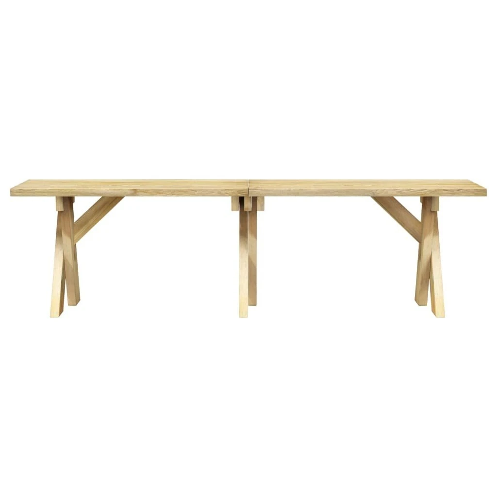 Con un diseño elegante a la par que práctico, ¡este juego de jardín mejorará el espacio al aire libre de tu casa! Hecho en madera de pino impregnada de verde, este juego de comedor de jardín de madera es muy robusto, duradero y resistente a la corrosión. El conjunto de muebles es una opción ideal para momentos de relax en el jardín de una casa de campo romántica o cerca de un estanque de jardín idílico para cenar con familiares y amigos. Ten en cuenta que la madera es un producto natural y puede presentar imperfecciones. Nota: Para prolongar la vida útil de los muebles de exterior, te recomendamos que los limpies con regularidad y no los dejes al aire libre sin protección innecesariamente.Limpia: Usa una solución de jabón suave.Almacenamiento: Si es posible, guárdalos en un lugar fresco y seco en el interior. Si el producto se almacena al aire libre, protégelo con una funda impermeable. Limpia y seca el exceso de agua o nieve de las superficies planas después de una lluvia o nevada. Permite la ventilación para evitar daños relacionados con la humedad. Mesa:Material: Madera de pino verde impregnadaDimensiones: 160 x 73 x 70 cm (ancho x profundo x altoBanco:Material: Madera de pino verde impregnadaDimensiones: 160 x 36 x 44 cm (ancho x profundo x altoResistente a la corrosión Requiere montaje: SíLa entrega incluye:1 x Mesa2 x Bancos