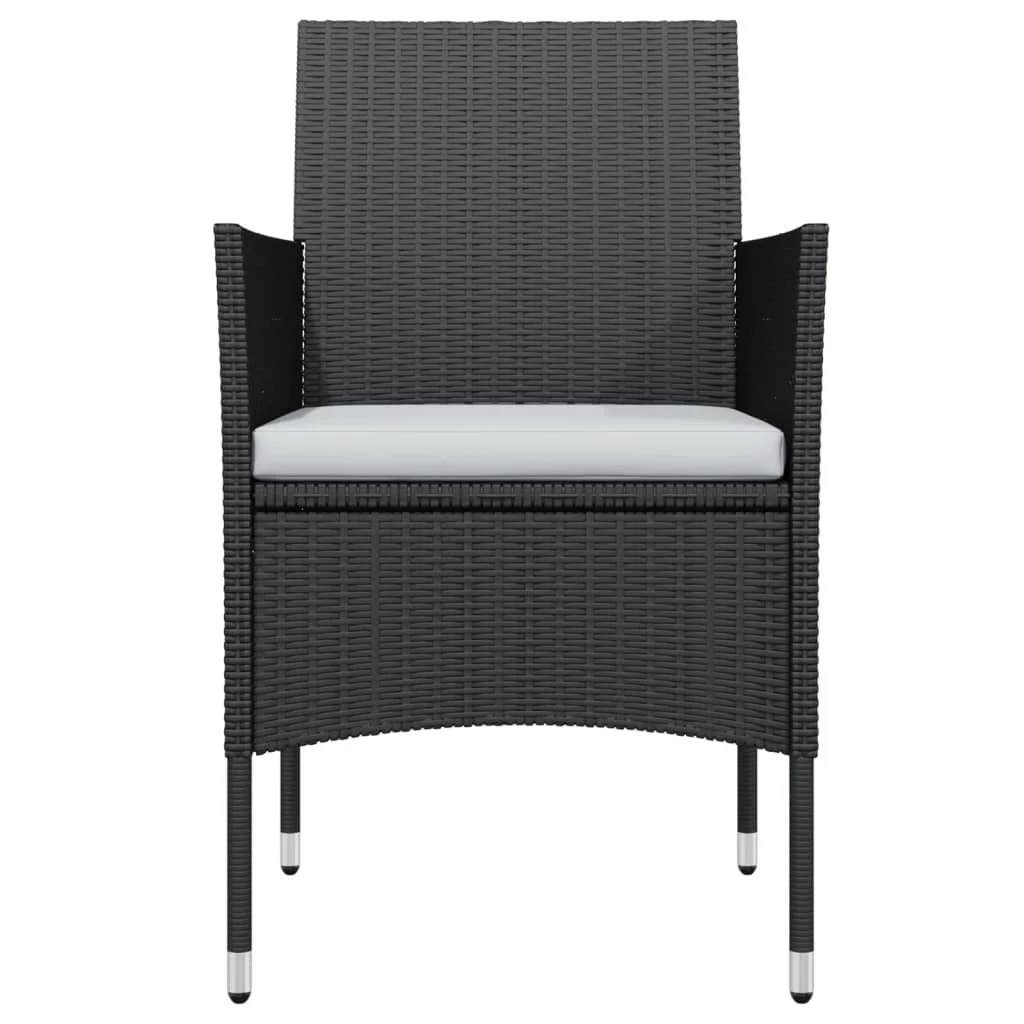 ¡Este juego de comedor para jardín es una excelente opción para cenar o relajarse en el espacio al aire libre de tu casa! Las estructuras de acero con recubrimiento en polvo hacen que la mesa y las sillas sean robustas y estables para usar a diario en exteriores. Gracias al ratán PE resistente al agua, las sillas son fáciles de limpiar y adecuadas para el uso diario. Asimismo, la lisa superficie de vidrio se limpia fácilmente con un paño húmedo y es perfecta para colocar comida, bebida y otros artículos decorativos. Nota: Para prolongar la vida de tus muebles de exterior, te recomendamos que los protejas con una funda impermeable. Color: NegroMaterial: Ratán PE, acero con recubrimiento en polvo, vidrioDimensiones de la mesa: 80 x 80 x 74 cm (largo x ancho x altoDimensiones de la silla: 53 x 58 x 84 cm (ancho x profundo x altoAncho del asiento: 39/44.5 cmProfundidad del asiento: 46 cmAltura del reposabrazos desde el suelo: 62/65 cmGrosor del cojín del asiento: 4 cmRequiere montaje: SíLa entrega contiene:1 x Mesa2 x Silla2 x Cojines