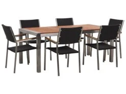 Conjunto De Jardín Mesa Con Tablero Negro De Piedra Natural 180 Cm, 6 Sillas De Tela Blanca GROSSETO
