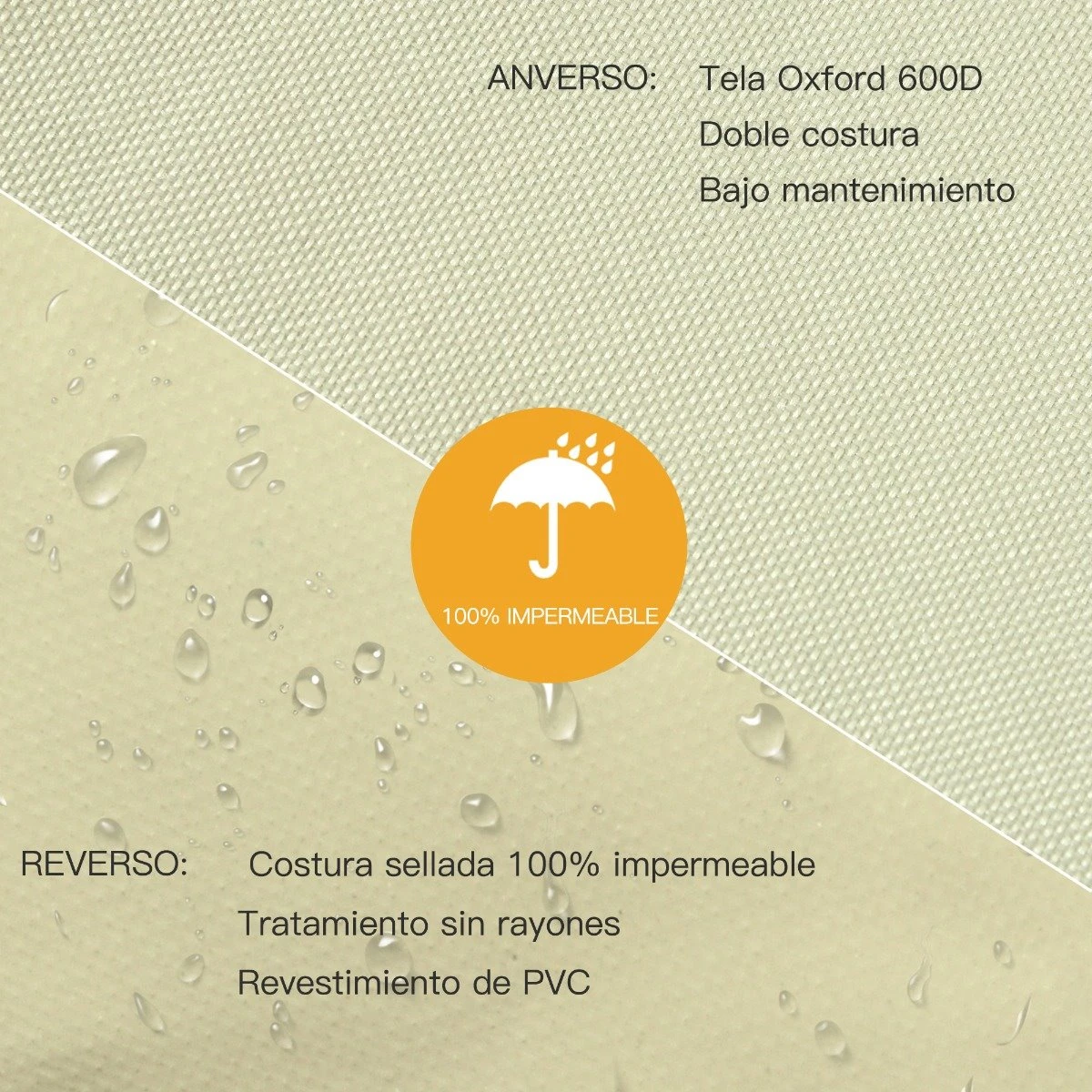 ¿Quieres alargar la vida de tu mobiliario exterior? Protégelo de las inclemencias del tiempo con esta funda para muebles. Fabricada con tela Oxford de alta calidad, esta cubierta es resistente a la decoloración, desgarros y al moho. El tejido está recubierto con PVC de modo que ofrece mayor resistencia al agua, la nieve y el polvo y por tanto, una mayor protección de tus objetos. Su diseño en color beige es muy elegante y combinará perfectamente con el resto de mobiliario. Es fácil de limpiar con un paño húmedo. ¡Es la solución ideal para cubrir los muebles de terraza!