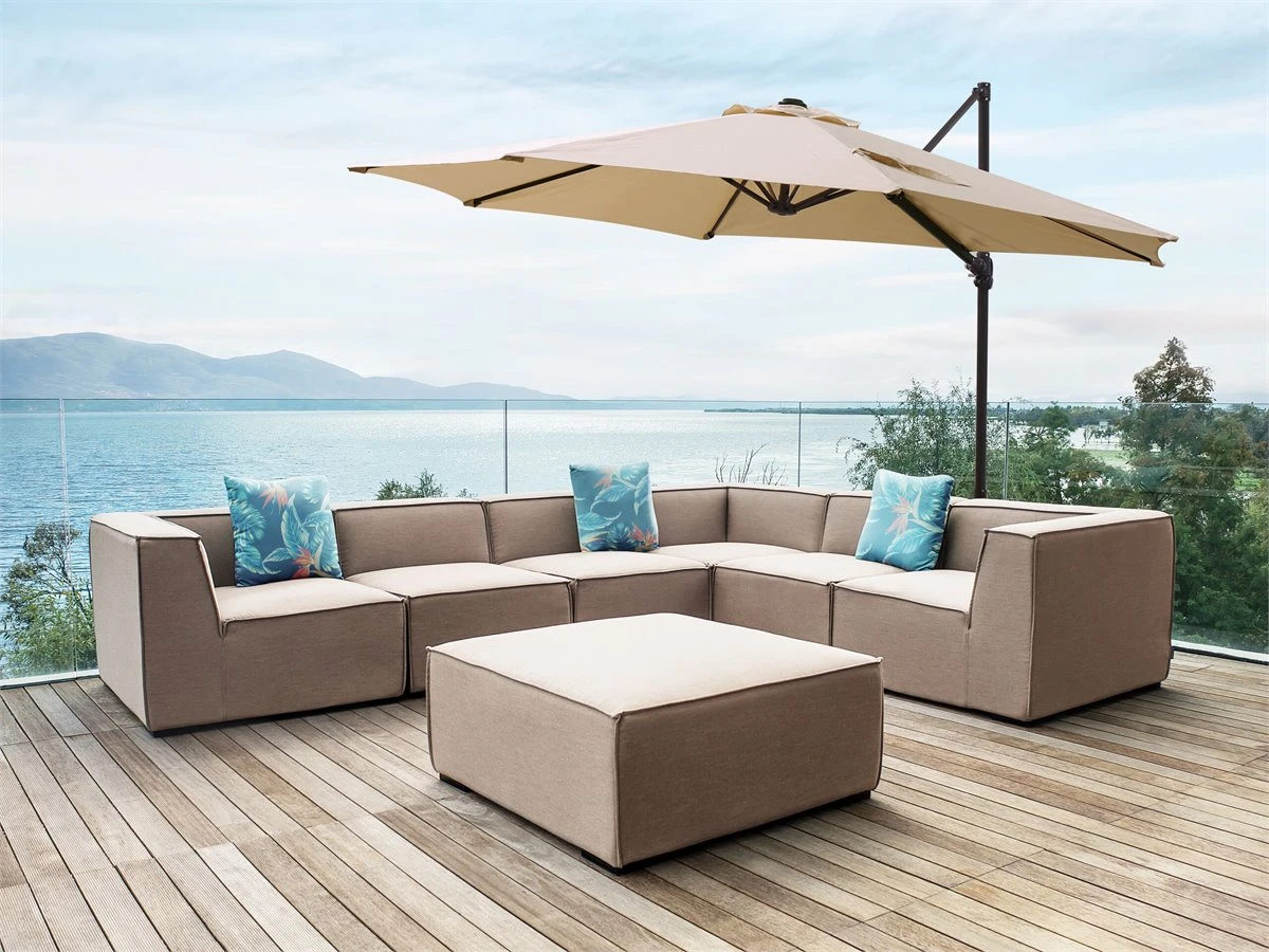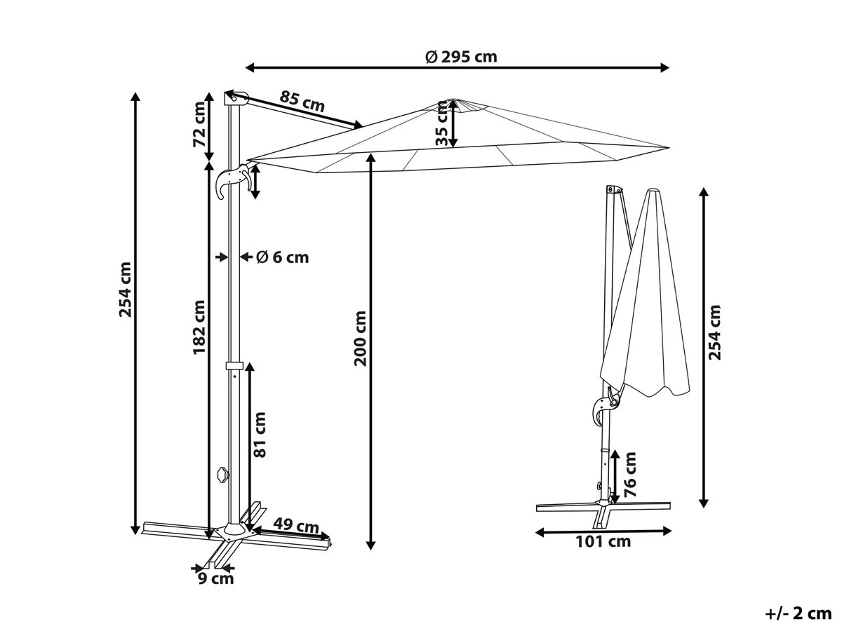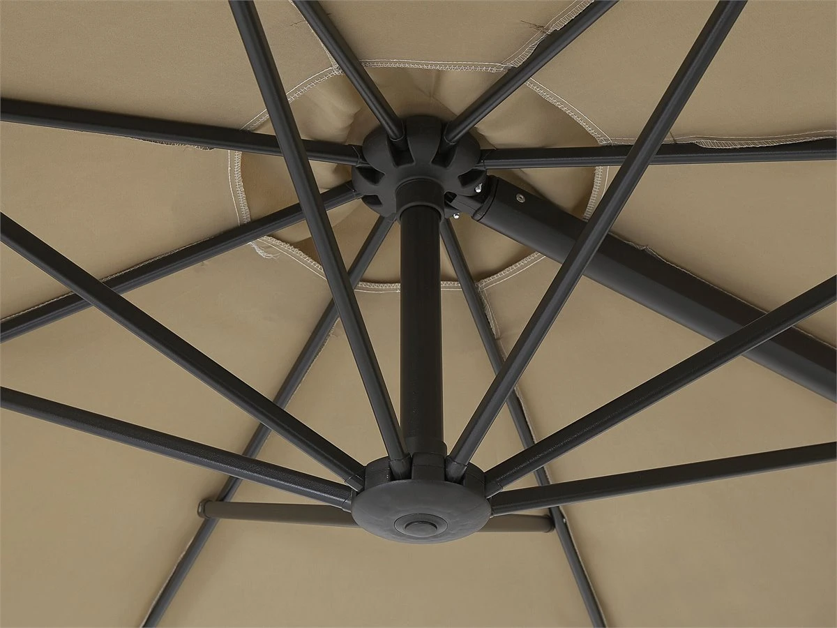 Sombrilla de jardín. Añade un toque de elegancia a tu zona exterior con esta sombrilla de jardín. Está fabricada a partir de poliéster resistente a las manchas y a condiciones climáticas adversas. La función giratoria 360º permite orientarla a la dirección deseada. El mecanismo de manivela facilita la apertura y el cierre. Detalles: Tipo de Producto: Sombrilla sin volantes Estilo: Moderno Color: Beige Tipo de material: Metal Material principal: Poliéster Material adicional: Aluminio Composición del Material: 100% Poliéster Forma: Octagonal Rotación 360: Sí Placas: No LED: No Número de láminas: 8 Láminas: 8 Inclinación: Sí Mecanismo de abertura de la sombrilla: Manivela Dimensiones: Profundidad: 295 cm Ancho: 295 cm Diámetro del poste: 40 Altura: 254 cm Peso: 9 kg La oferta incluye: 1 x Sombrilla, No incluye: base para la sombrilla Ventajas: Mecanismo de abertura por manivela, Pantalla giratoria e inclinable de 360°, Base en cruz para pesas en sombrillas, Colores elegantes y diseño original, Apariencia moderna y calidad durante muchos años, Resistencia UV Información de montaje: Requiere montaje completo. 5-15 min. Información adicional: Debe tenerse en cuenta que el peso ideal de la base para la sombrilla es de unos 50 kg. De esta forma, la sombrilla podrá soportar vientos de hasta 25 km/h. Una vez que la sombrilla esté completamente cerrada o abierta, no continúes girando la manivela en la misma dirección, ya que podrías dañar el mecanismo. Texto de resistencia: El producto está hecho con tela resistente a los rayos UV, lo que significa que se puede usar bajo la luz del sol sin preocuparse por la pérdida de color. En cualquier caso, es recomendable colocar los muebles debajo de una cubierta impermeable cuando no se utilicen, para asegurar su máxima durabilidad. Resistencia: Rayos UV Consejos de mantenimiento: Poliéster: 1.Limpiar con champú seco y una esponja húmeda o un limpiador suave 2.Cuando no esté en uso, manténgalo en un lugar limpio y seco para protegerlo de las condiciones atmosféricas 3.Aspire con un accesorio adecuado.